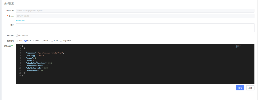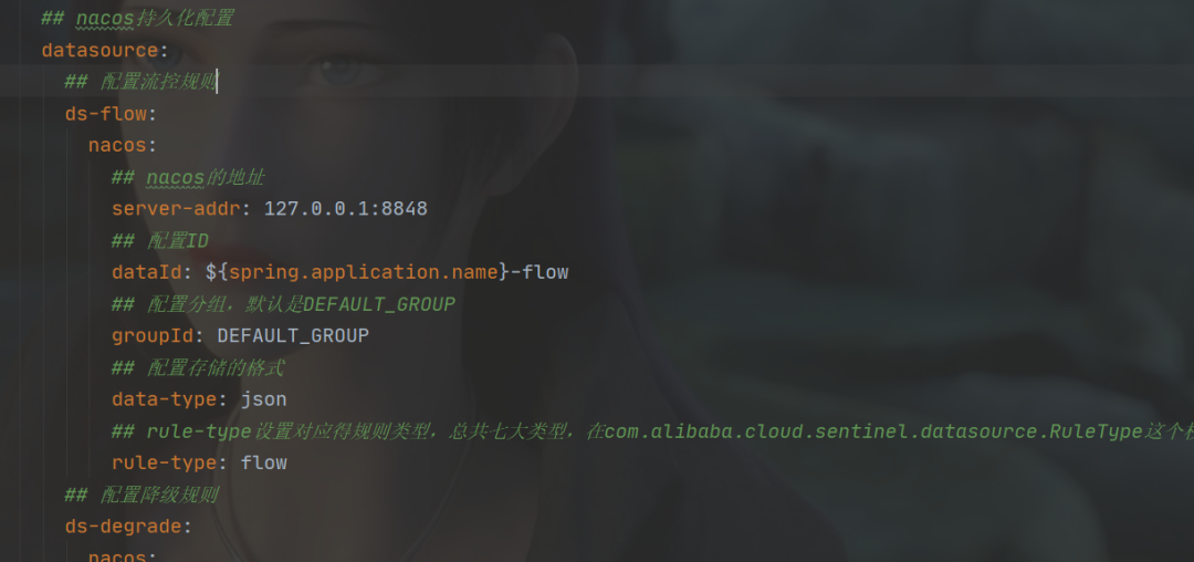 com.alibaba.csp.sentinel.dashboard.rule.nacos.NacosConfigUtil这个工具类中对应的是限流规则在nacos中的一些配置项,有groupId、dataId…对应的配置如下: