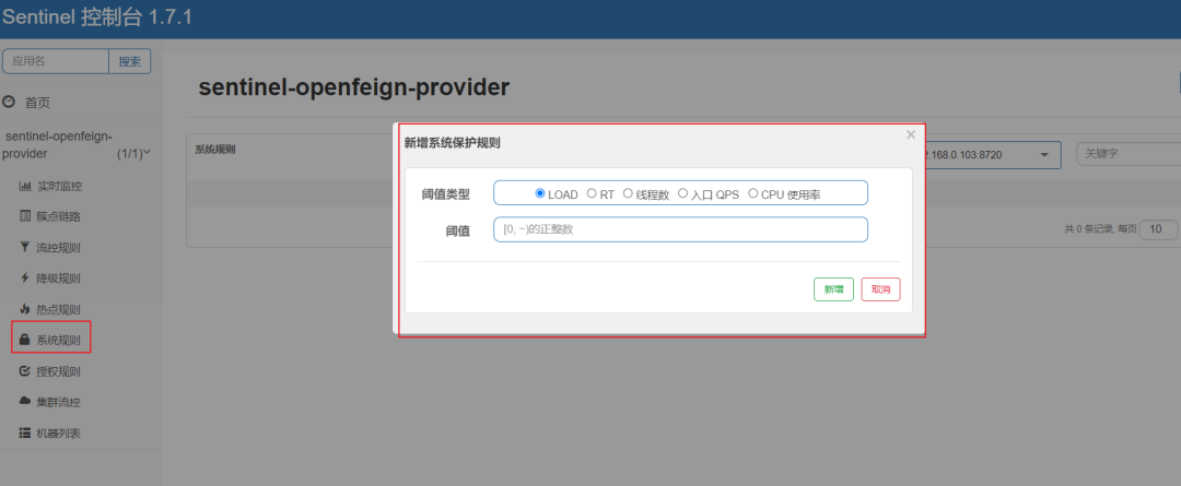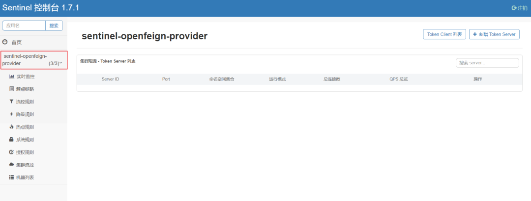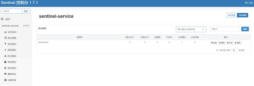 可以看到目前只有一个服务sentinel-dashboard被监控了,这个服务就是自己。