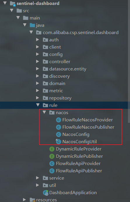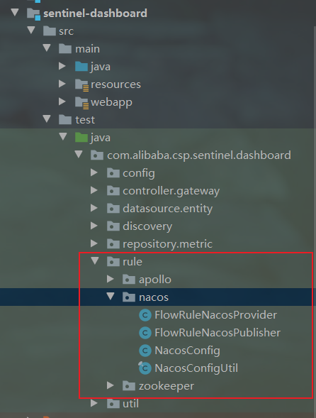 将这个nacos包复制到com.alibaba.csp.sentinel.dashboard.rule这个包下,如下图: