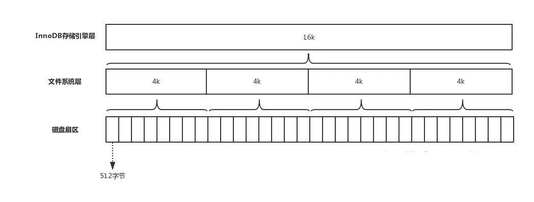 磁盘扇区、文件系统、InnoDB 存储引擎都有各自的最小存储单元。