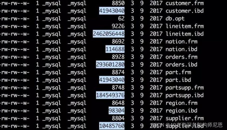 从物理意义上来讲,InnoDB表由共享表空间文件(ibdata1)、独占表空间文件(ibd)、表结构文件(.frm)、以及日志文件(redo文件等)组成。