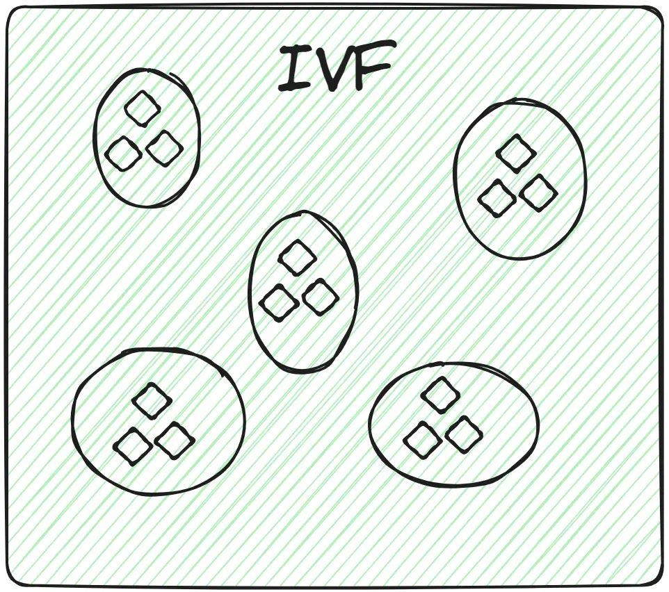 IVF是最基本的量化索引技术之一。它使用类似于K-means算法的技术将整个数据集分成几个组。数据库中的每个向量都被分配到一个特定的集群中。这种结构化的向量排列允许用户更快地进行搜索查询。当一个新的查询到来时,系统不会遍历整个数据集,而是首先标识出最接近或最相似的集群,然后在这些集群中进行搜索以找到特定的文档。