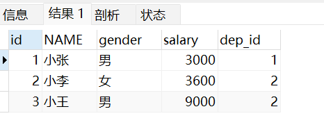 INSERT INTO emp(NAME,gender,salary,dep_id) VALUES