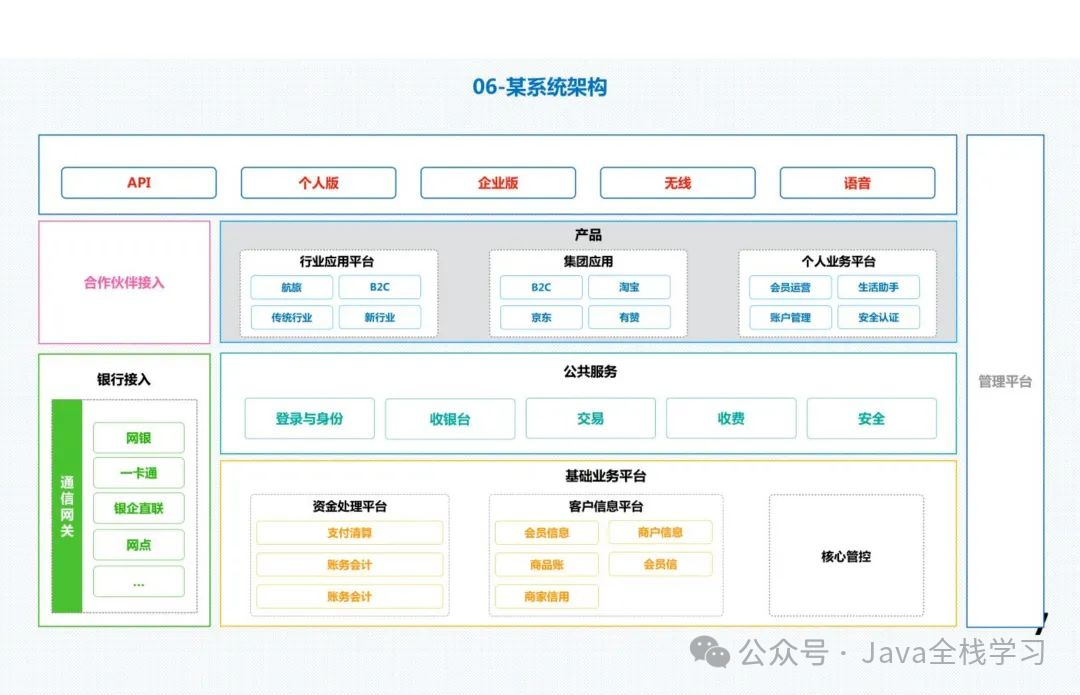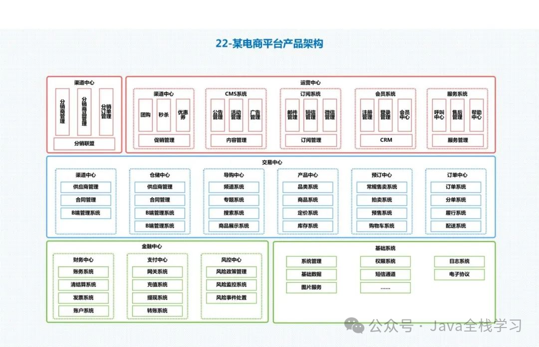 在画业务架构前,有必要对整个业务体系进行全量的思考,将所有涉及到的应用、功能、系统、能力、平台全部要罗列出来。然后进行提炼、归纳、分类,按照常用的分类模板,或是自建模板进行大体框架的构思。最后按照分层、分模块、分功能的维度将具体的内容补充进去。