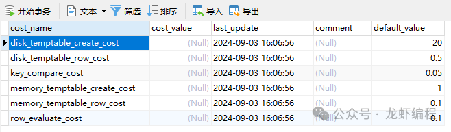 server_cost是server层成本参数表,表字段和数据如下所示: