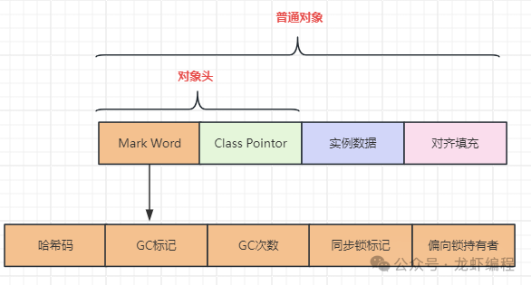 (1)Java的对象是由对象头(mark word + class pointor + 数组长度【数组对象特有】)、实例数据和对齐填充组成的。