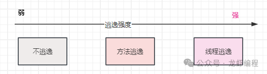 方法逃逸和线程逃逸他们逃逸强度不一样,如下图所示: