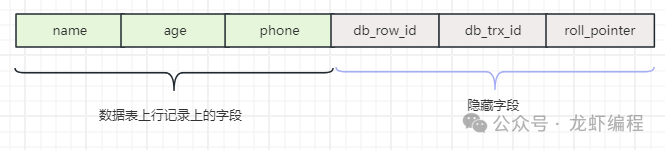 | db_row_id | 隐藏主键,如果我们没有给这个表创建主键,那么会以这个字段来创建聚簇索引 |