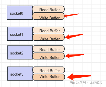 写缓冲区文件描述符的集合,内核只检测本集合中文件描述符对应的写缓冲区,如下图所示: