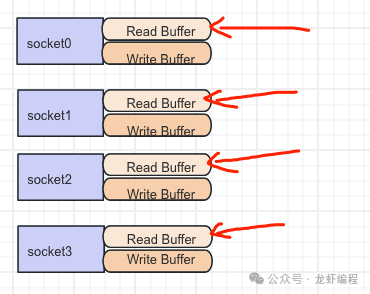 读缓冲区的文件描述符的集合,内核只检测这个集合中文件描述符对应的读缓冲区,如下图所示: