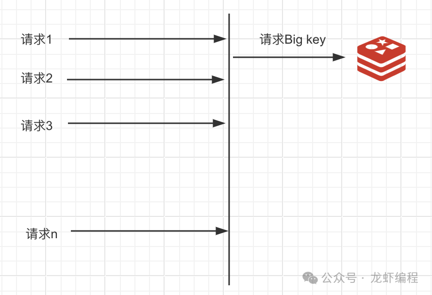 (2)超时阻塞:由于Redis是单线程的,对big key的操作通常会比较耗时,这可能导致后续的请求被阻塞,增加Redis的响应时间,严重时可能导致服务不可用。如下图所示:
