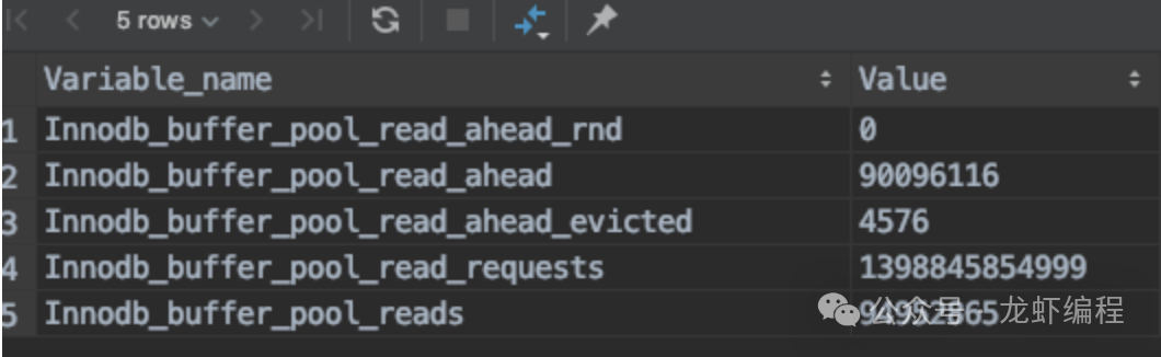 为了评估buffer pool的性能指标,通过命令查询多少的查询在buffer pool中执行的