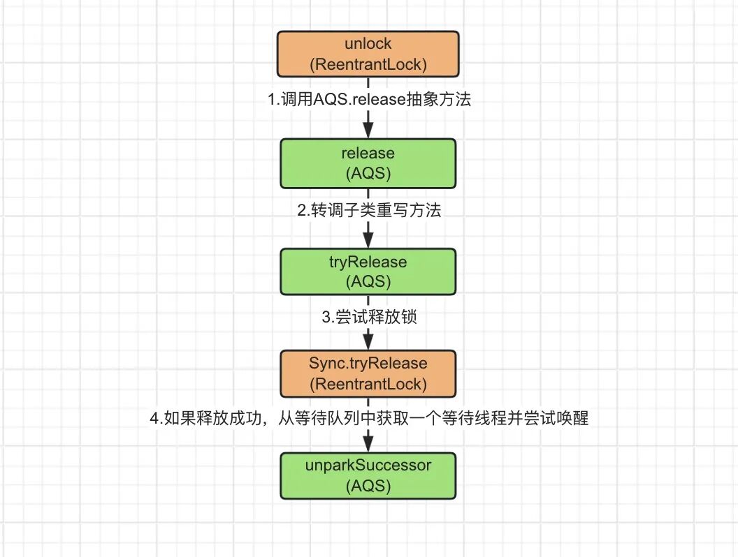 unlock()方法的释放锁实现相对来说就简单多了,整个请求链路可以用如下图进行简要概括。
