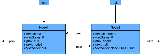 • 1.调用addWaiter()方法,将当前线程封装成一个节点,尝试通过CAS方式插入到双向链表的队尾,如果没有成功,再通过自旋方式插入,直到成功为止