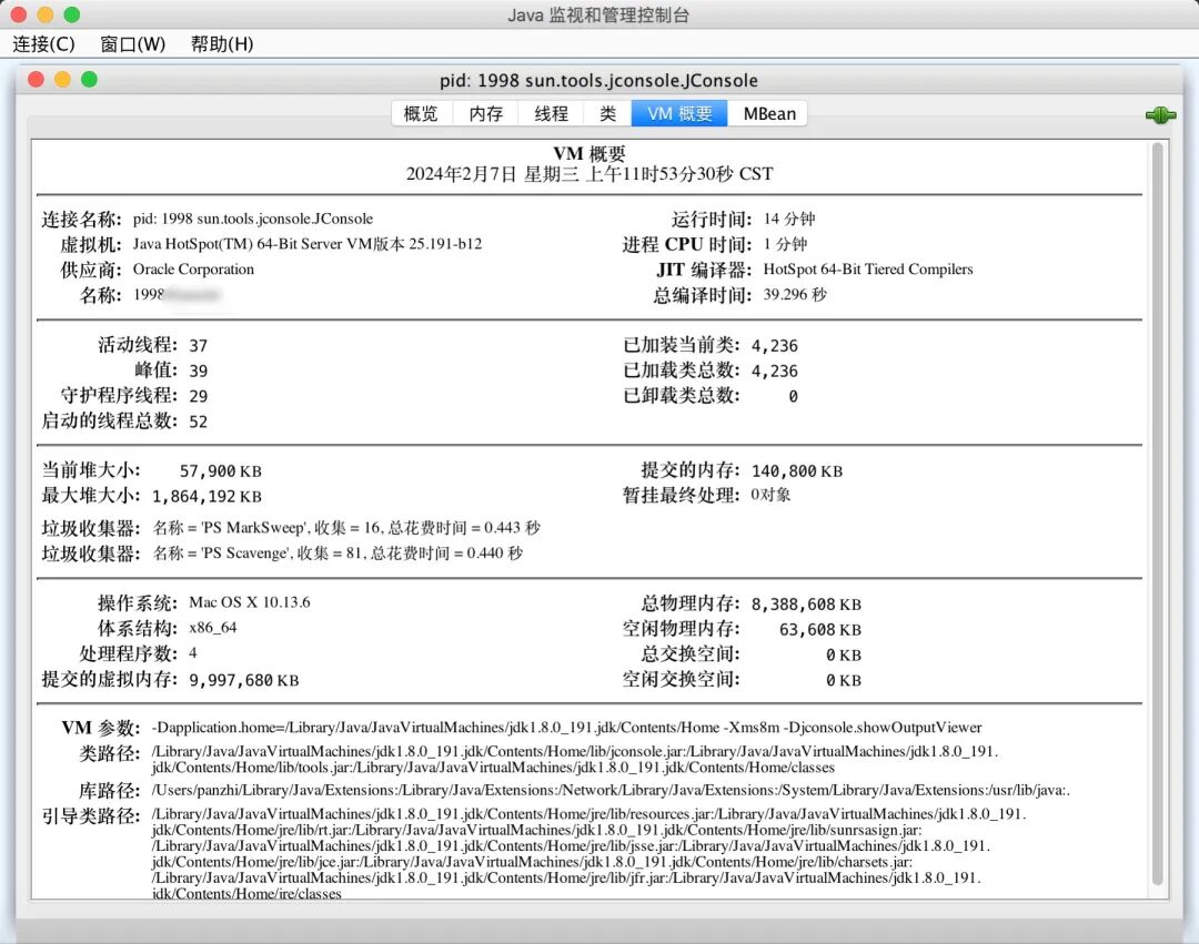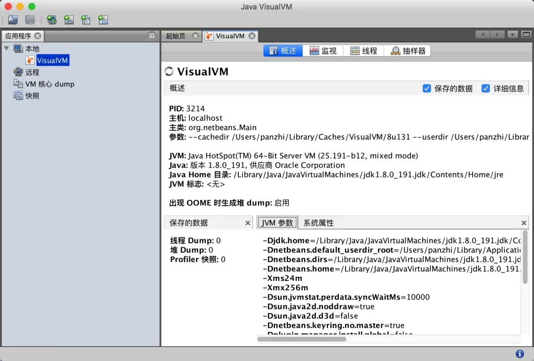 进入之后,就可以看到 VisualVM 相关的展示界面,例如概述、监视、线程、抽样器等板块。概述界面如下。
