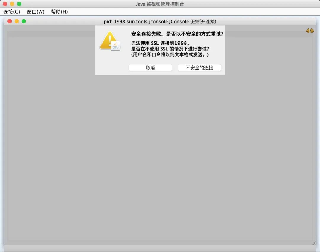 点击连接之后,可能会弹出如下的界面,选择“不安全的连接”即可。