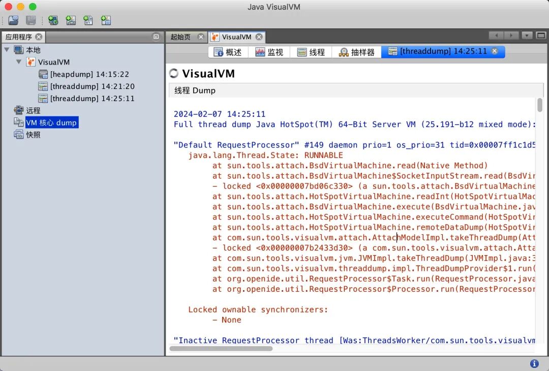 VisualVM 也是一款 JDK 自带的可视化监控工具,利用它不仅能够监控服务的 CPU、内存、线程、类等信息,还可以捕获有关 JVM 软件实例的数据,并将该数据保存到本地系统,以供后期查看或与其他用户共享,从 JDK1.6 开始加入。