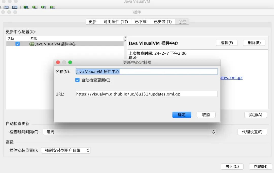 在 VisualVM 的菜单栏,点击“工具” -》 “插件”,便会弹出如下界面。
