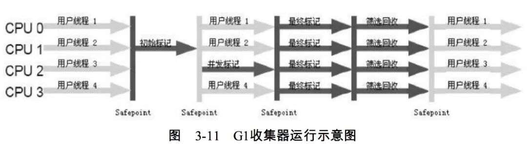 与前面几个收集器不同,它采用了一种全新的策略可以在垃圾回收过程中的某些阶段用户线程和垃圾回收线程一起工作,从而避免了因为长时间的垃圾回收而使用户线程一直处于等待之中。