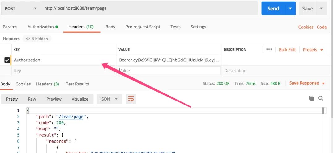 当我们需要请求其它服务接口时,只需要在请求头部headers中加入Authorization参数即可。