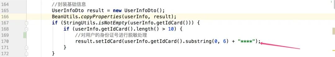 但如果是类似上面那种很多位置的数据,需要分门别类的进行脱敏处理,通过这种简单粗暴的处理,代码似乎就显得不太优雅了。