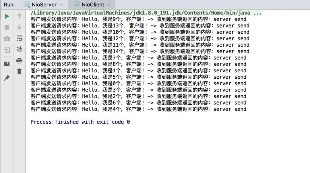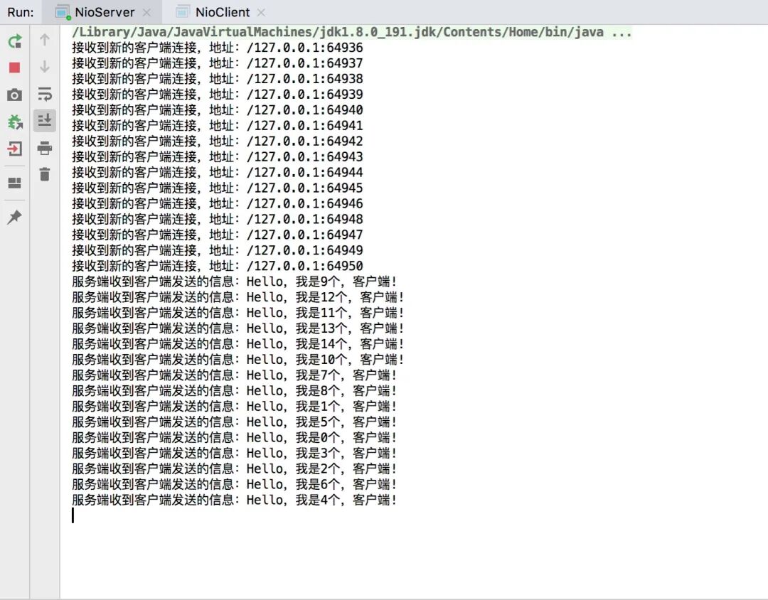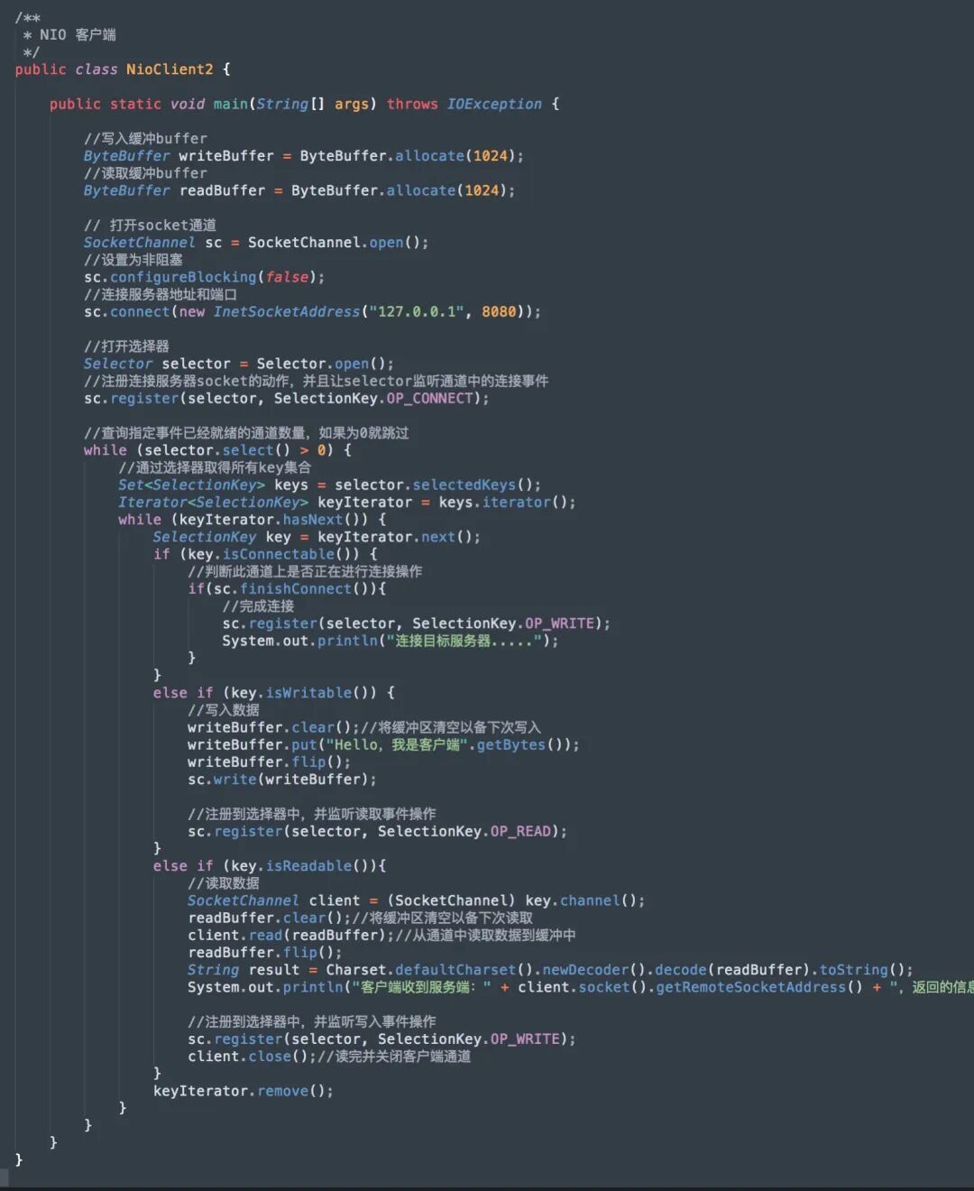 当然,客户端也不仅仅只限制于 IO 的写法,还可以使用SocketChannel 来操作客户端,程序如下: