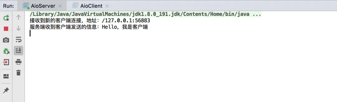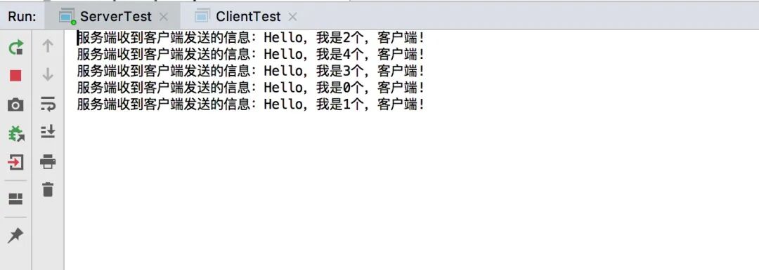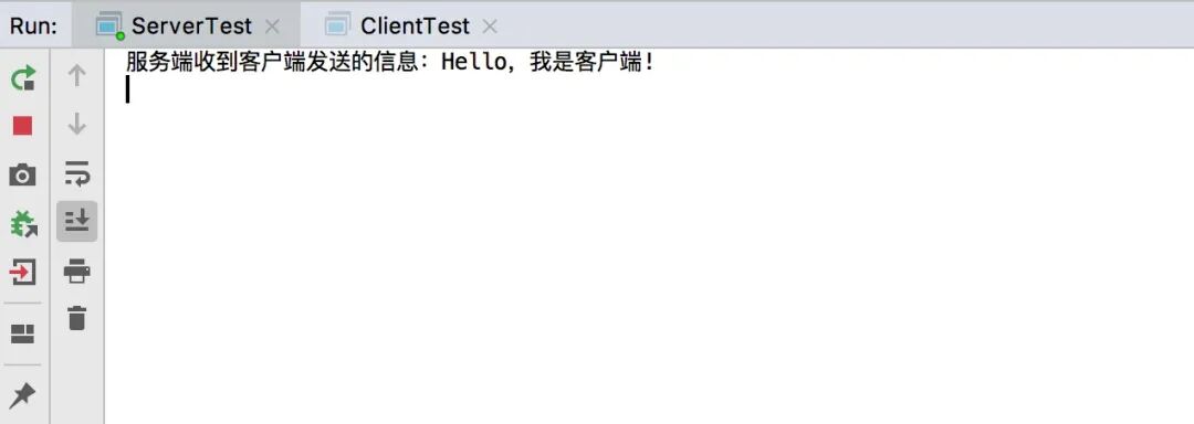 我们先启动服务端程序,再运行客户端,服务端收到客户端发送的信息,服务端打印结果如下: