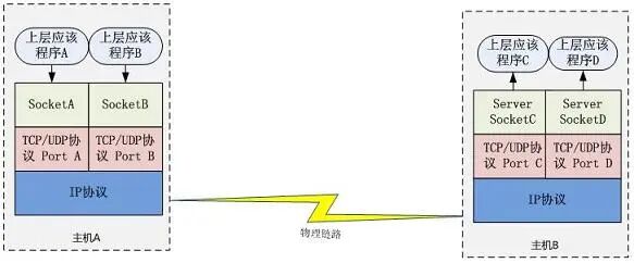 我们知道网络层使用的 IP 协议可以帮助我们根据 IP 地址来找到目标主机,但是一台主机上可能运行着多个应用程序,如何才能与指定的应用程序通信就要通过 TCP 或 UPD 的地址也就是端口号来指定。这样就可以通过一个 Socket 实例代表唯一一个主机上的一个应用程序的通信链路了。