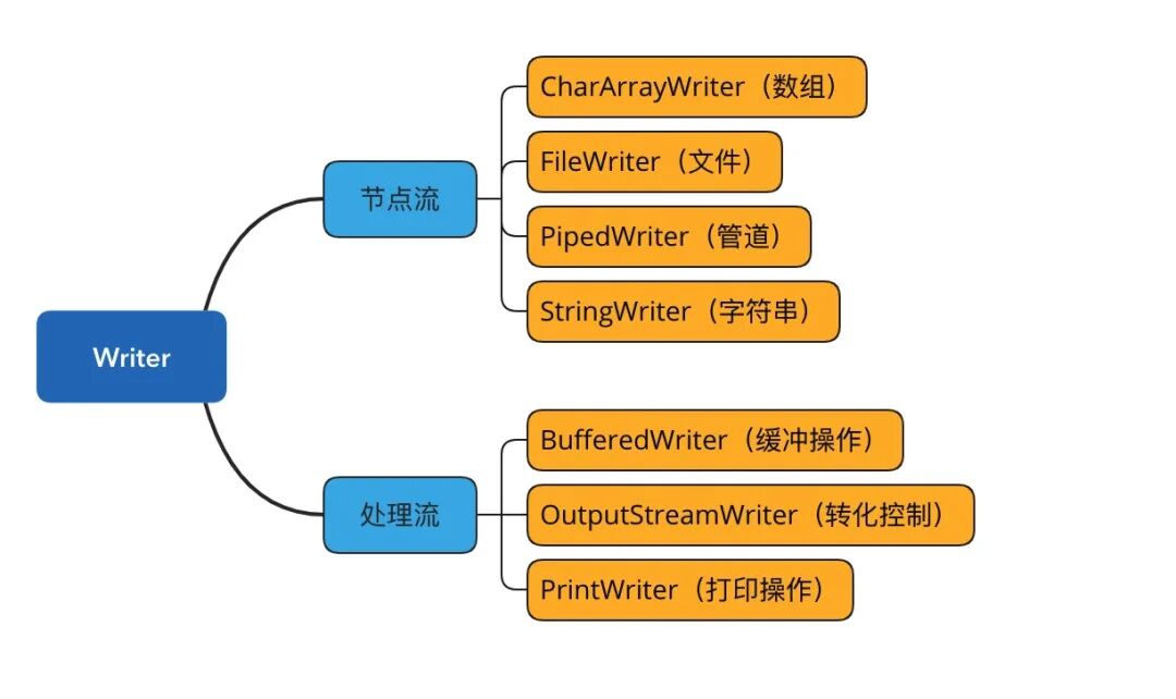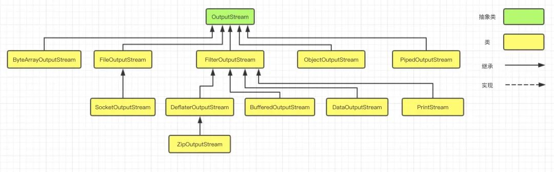 输出流根据数据节点类型和处理方式,也分别可以划分出了若干个子类,如下图: