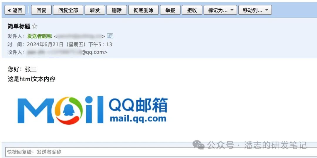 mailPushService.sendMail("xxxxx@qq.com","简单标题", sendHtml);