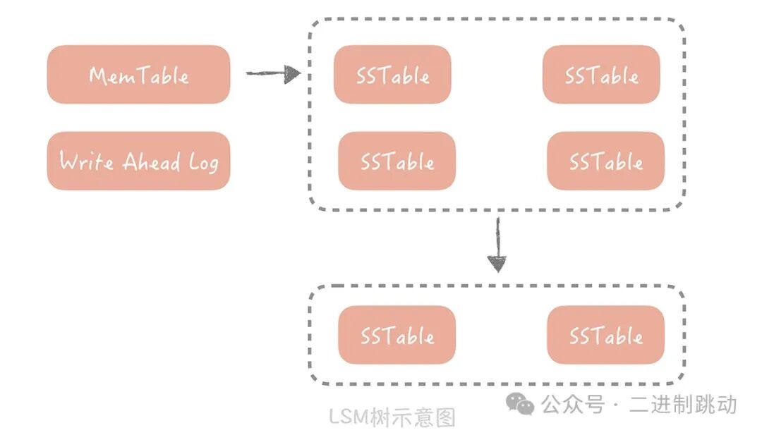 - 当 MemTable 中的数据达到一定规模时,系统会将其刷新到磁盘上,生成一个新的文件,称为 SSTable(Sorted String Table)。