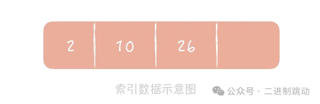 我们知道 MySQL InnoDB 存储引擎使用 B+ 树存储索引数据,而主键也是一种索引。索引数据在 B+ 树中是有序排列的,就像下面这张图一样,图中 2,10,26 都是记录的 ID,也是索引数据。