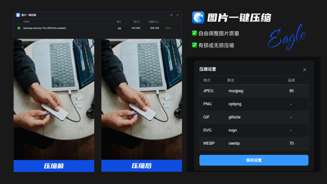 Eagle插件可快速转换收藏图像格式,支持WebP、JPG、PNG等,节省存储空间,满足多样化需求。