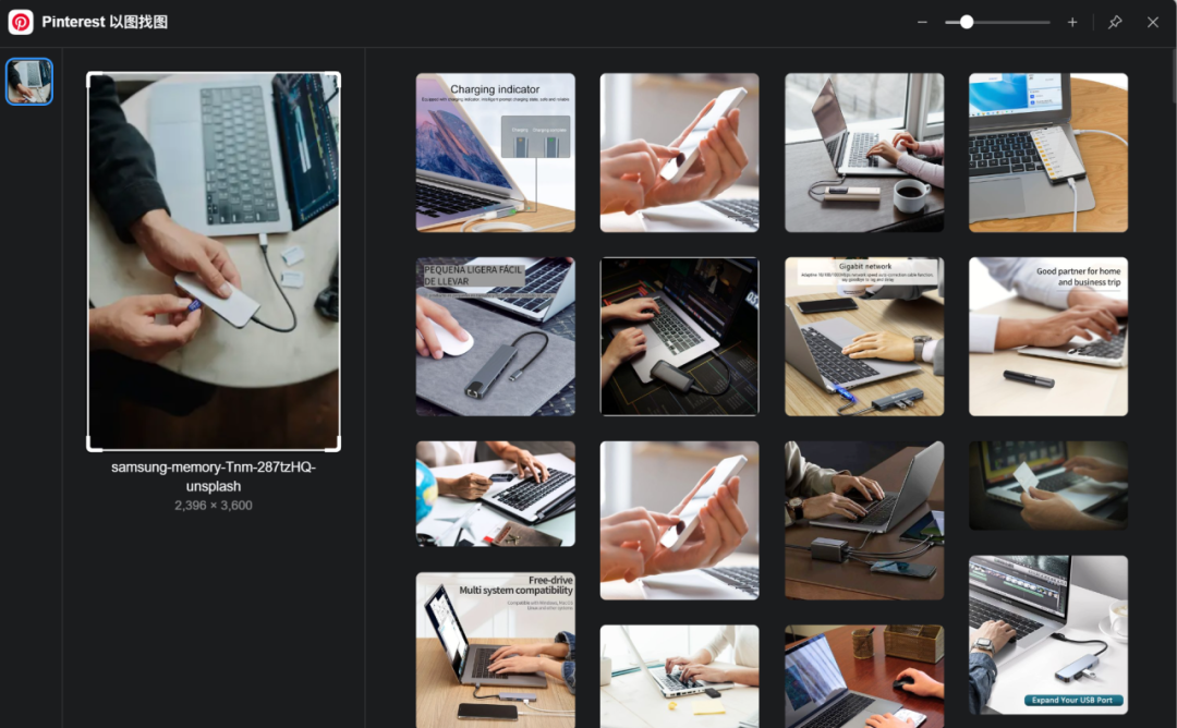集成 Pinterest 的以图找图功能,我们可以一张图像做为起点,迅速找到更多相同风格、类型的灵感!
