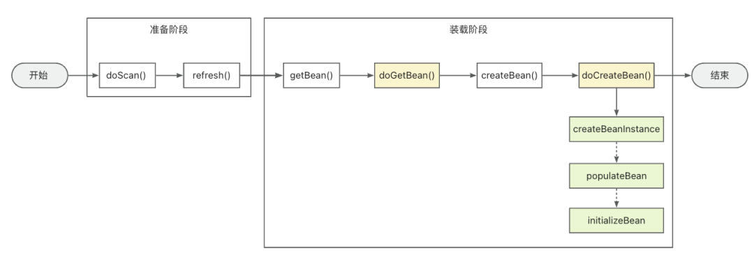 Bean的加载最核心的代码就在doCreateBean方法中,包括三个阶段: