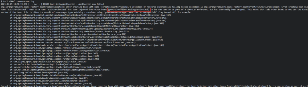 - 而到单例PortraitOfflineLabelingServiceImpl创建的时候,填充属性AuditServiceImpl时直接能从单例池拿到完整的bean,因此PortraitOfflineLabelingServiceImpl也能正常走完后续生命周期流程。