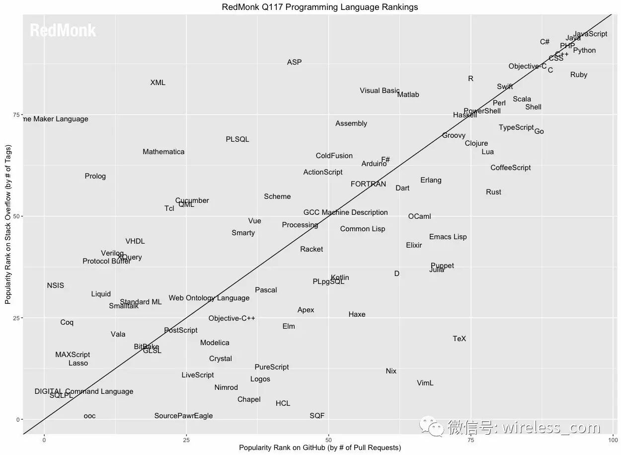 1995年,诞生了JavaScript语言,那一年,我刚刚从大学毕业。在今年RedMonk 推出的2017 年第一季度编程语言排行榜中,JavaScript 排第一,Java 第二,Python 反超 PHP 排第三,PHP 第四,C# 和 C++ 并列第五。RedMonk 排名的主要依旧是各种编程语言在 Stack Overflow 和 GitHub 上的表现,比如编程语言在 Stack Overflow 上的讨论数量,在 GitHub 上的代码量等。尽管有一定的片面性,还是说明了JavaScript 应用的广泛性。从全栈的角度看,Javascript 是必备的一种编程语言。