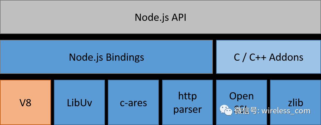 V8 是NodeJS 中的核心引擎,NodeJS的系统架构大致如下: