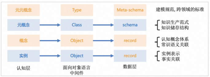 Schema是知识的“元数据”表达方式,定义了知识的概念的属性,关系,属性及约束。主要实现了实体的结构化和实体间的关系的定义。