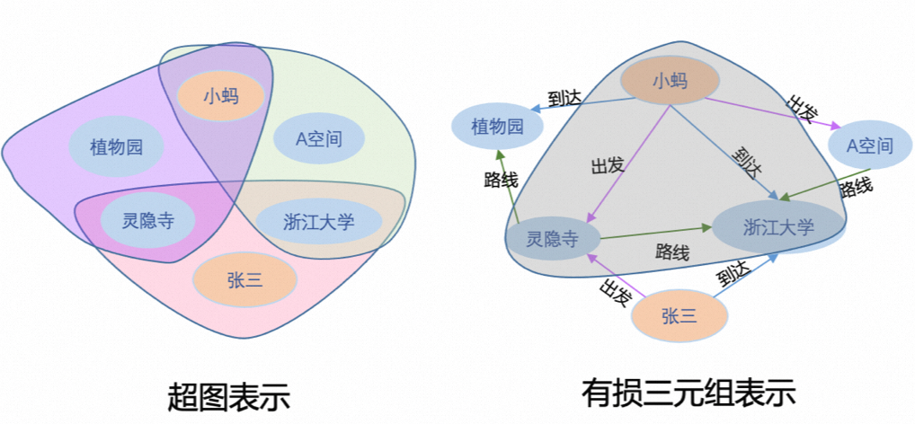 | 多元关系建模问题 ●用户行为、金融事件、业务状态流,都可以抽象为多元时空行为事件建模 ●spo三元组表达多元关系是有损的 ●超图结构的理解,对于非算法用户有学习门槛,难以直接可视化 ●行为时间事件之间,本身存在着时序、因果、共现的等关系 |