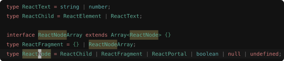 遇到这种类型时,需要意识到我们其实是在提供一个 React 插槽类型,如果在组件消费中仅仅是让他展示出来,而不做其他处理的话,就应当使用 ReactNode 类型作为类型定义。