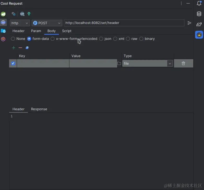 Cool Request支持六种请求体,也支持二进制文件上传。