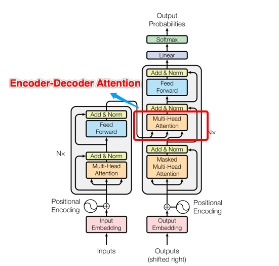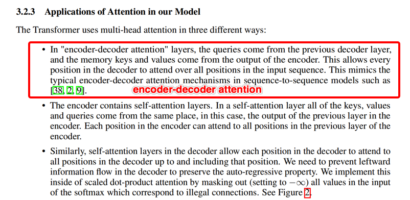 (3)新手的疑问:架构图中明明是Multi-Head Attention,论文中的描述又变为Encoder-Decoder Attention,怎么又冒出一个新名词Cross Attention?