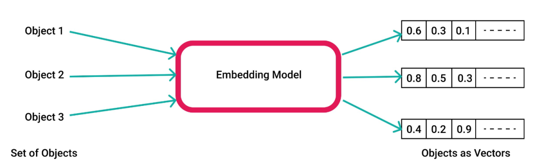 Embedding向量不仅仅是对物体进行简单编号或标识,而是通过特征抽象和编码,在尽量保持物体间相似性的前提下,将物体映射到一个高维特征空间中。 Embedding向量能够捕捉到物体之间的相似性和关系, 在映射到高维特征空间后,相似的物体在空间中会聚集在一起,而不同的物体会被分隔开。
