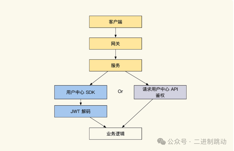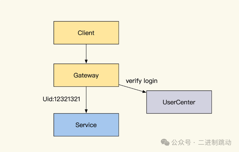 如果业务要求用户必须登录才能使用,可以在业务逻辑中增加一个判断,检查请求 header 是否包含 uid 。若缺少 uid ,则返回统一的错误码给前端,提示用户需要先登录。这种鉴权服务设计有效解耦了业务模块和用户中心。即使用户中心逻辑变更,也无需业务模块同步升级。
