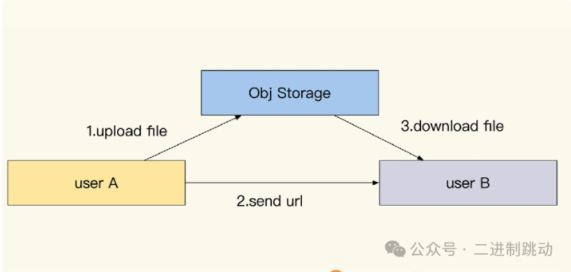 除了通过服务端提供数据供用户下载之外,还有一种更为普遍的数据交换方式,即用户之间的文件传输。例如,当用户 A 想传递一个文件给用户 B,通常的做法是通过 TCP 连接两端客户端或通过服务端中转,但这种方式传输效率较低。而使用对象存储则能显著提升文件传输和交换的效率。