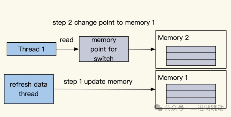 等到加载完成之后呢,我们将这两个 map 的指针指向进行互换,通过这样的操作就能够实现数据的批量更新啦。