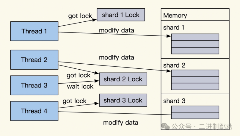 回过头来再看一下,当我们对外提供缓存数据服务的时候呀,如果想要提供更加高效的并发读写服务,那就需要把相关的数据存放在本地内存当中啦。通常情况下呢,这会被实现为在一个进程内部的多个线程来共同共享这些缓存数据哦。