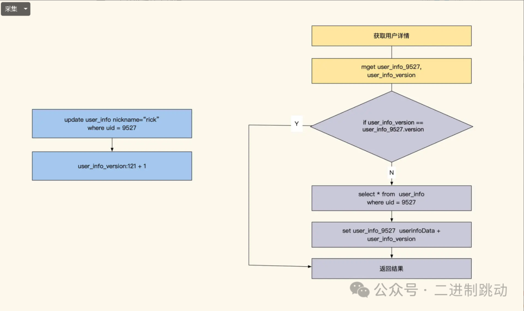 如果表内数据更新较少,还可以考虑使用版本号缓存策略。这种方法比较直接:一旦有任何更新,表中所有数据缓存都会过期。例如,可以为 user_info 表设置一个版本号 key,比如 user_info_version。当表数据发生更新时,直接将 user_info_version 自增 1。写入缓存时,同时记录当前版本号;读取时,业务逻辑会检查缓存版本号与表版本号是否一致。如果不一致,就更新缓存数据。需要注意的是,如果版本号频繁更新,缓存命中率会大幅下降,因此该方法更适合数据更新不频繁的表