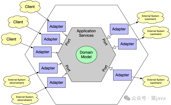 六边形架构:Hexagonal Architecture,又名“端口适配器架构”,它是由 Alistair Cockburn 于 2005 年在论文中引入的。